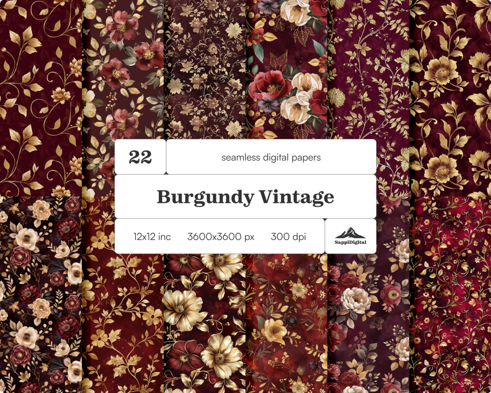 22 Burgundy Vintage Floral Seamless Patterns