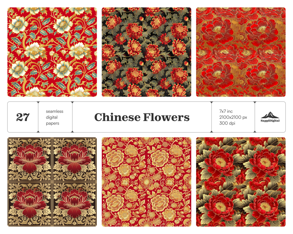 Chinese floral patterns is a collection of exquisite Chinese floral patterns that offers the unique aesthetics and cultural heritage of China. These unique patterns reflect the richness and grace of Chinese culture, creating an atmosphere of sophistication and grace.