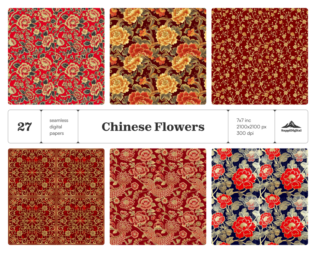 Chinese floral patterns is a collection of exquisite Chinese floral patterns that offers the unique aesthetics and cultural heritage of China. These unique patterns reflect the richness and grace of Chinese culture, creating an atmosphere of sophistication and grace.