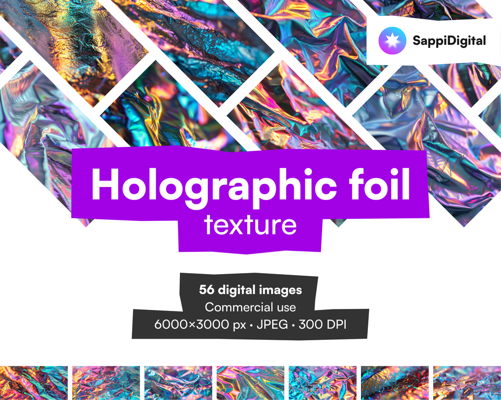 A set of 56 iridescent holographic textures with foil, metal, glitter, and bokeh effects. Pearlescent Textures, instant download commercial use, metallic backgrounds with pastel foil